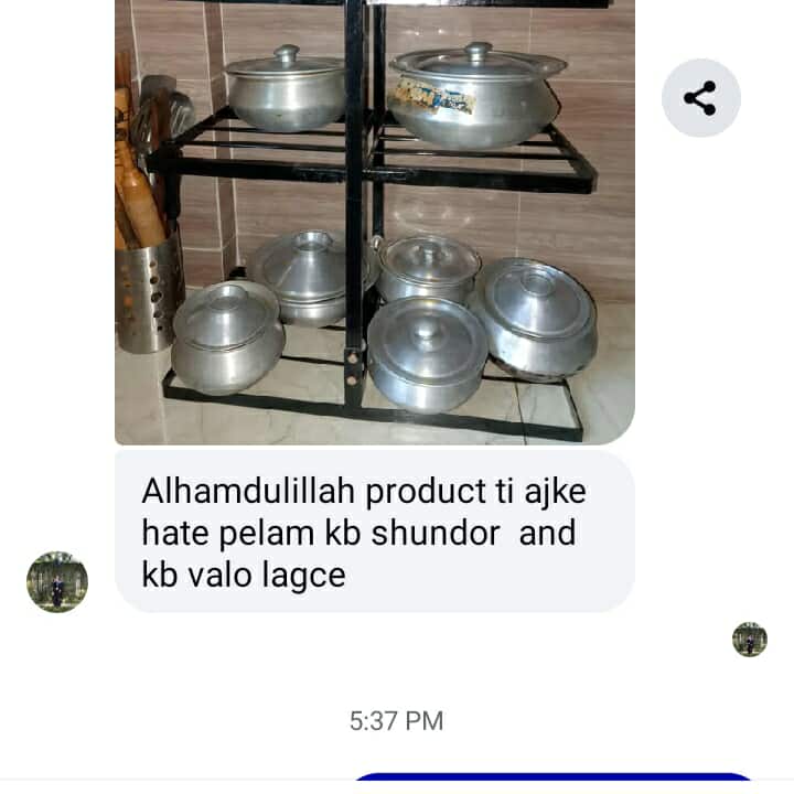 ✅ কিচেন ডিস রেক – হাড়ি পাতিল থেকে ভাত তরকারি, সবকিছু গুছিয়ে রাখার পারফেক্ট সমাধান! 🍽✨💨 আপনার রান্নাঘর কি ছোট জায়গার জন্য সবসময় অগোছালো থাকে?💨 পছন্দের হাড়ি, পাতিল কিংবা রান্নার প্রয়োজনীয় বাসনপত্র রাখার জায়গা কম?💁 আমাদের কিচেন ডিস রেক নিয়ে আসছে আপনার সমস্যার এক চূড়ান্ত সমাধান। এই ফোল্ডিং ডিস রেক শুধু জায়গা বাঁচাবে না, বরং আপনার রান্নাঘরকে দেবে আধুনিক এবং পরিপাটি একটি লুক।✅ পণ্যের প্রধান বৈশিষ্ট্য:👉 ৬টি ফোল্ডিং তাক: প্রতিটি তাক সহজে খুলে ফেলা যায়। আপনি আপনার প্রয়োজন অনুযায়ী উঁচু বা নিচু করে যেকোনো ধরনের বাসনপত্র রাখতে পারবেন।👉 দুই জায়গায় ব্যবহারযোগ্য: এই ডিস রেক আপনি রান্নাঘরের উপরে বা নিচে উভয় জায়গায় ব্যবহার করতে পারবেন।👉 উন্নতমানের আইরন মেটাল: এখানে আপনি রান্না করা তরকারি সহ হাড়ি-পাতিল সহজেই রাখতে পারবেন কারণ প্রতিটি সেলফ 25 কেজি ওজন বহন করতে সক্ষম। টেকসই এবংদীর্ঘস্থায়ী।👉সহজ ব্যবস্থাপনা: আপনার হাড়ি পাতিলের উচ্চতা অনুযায়ী সেল্ফ উচ্চতা কমবেশি করতে পারবেন। কারণ এখানে দুই ইঞ্চি পর পর ফুটা করা আছে। ✍️ প্রয়োজনীয় মাপ:উচ্চতা:২৩ ইঞ্চিদৈর্ঘ্য: ২১ ইঞ্চিপ্রস্থ: ১০ ইঞ্চি📢 এই প্রোডাক্ট এর উচ্চতা যদি বেশি হয় আপনার জায়গা অনুযায়ী উচ্চতা বড় হয়ে যায় তাহলে আপনি উচ্চতা কাস্টমাইজ করে ছোট করে নিতে পারবেন। সে ক্ষেত্রে অর্ডার করার সময় নোটে তা উল্লেখ করে দিতে হবে।👉 স্টাইলিশ ডিজাইন: রান্নাঘরের ইন্টেরিয়রকে আরও আকর্ষণীয় এবং ব্যবহারবান্ধব করে তুলবে।👉 সহজ সেটআপ: ইনস্টলেশন বা সরানো অত্যন্ত সহজ।✅এই কিচেন ডিস রেক কেন ব্যবহার করবেন?1. স্পেস সেভার: ছোট রান্নাঘরের জায়গা বাঁচাতে অসাধারণ।2. বহুমুখী ব্যবহার: ভাত-তরকারির হাঁড়ি, ছোট বাটি, ডালার ঝুড়ি কিংবা অন্যান্য হাড়ি-পাতিল – সবকিছু রাখার জন্য আদর্শ।3. মজবুত নির্মাণ: আইরন মেটালের কারণে 15 কেজি ভারী জিনিসও সহজেই রাখতে পারবেন।4. পরিপাটি রান্নাঘর: বাসনপত্র সুন্দরভাবে সাজিয়ে রাখার মাধ্যমে রান্নাঘরকে পরিপাটি ও আধুনিক করে তোলে।✅ ব্যবহারের সুবিধা:⭐ রান্নাঘরের নিচে: বাসনপত্র, হাড়ি-পাতিল গুছিয়ে রাখুন⭐ রান্নাঘরের উপরে: ভাত-তরকারির হাঁড়ি বা অন্যান্য রান্নার প্রয়োজনীয় জিনিস রাখুন।⭐ পরিবারের জন্য আদর্শ: বড় পরিবারে যেখানে বাসনপত্র বেশি, সেখানে এর ব্যবহার অত্যন্ত কার্যকর।⭐ দৈনন্দিন প্রয়োজন মেটাতে পারদর্শী: রান্নাঘরের প্রতিদিনকার ব্যবহারের জন্য উপযুক্ত।✅ কেন আমাদের থেকে কিনবেন?সাশ্রয়ী মূল্য: মাত্র 1520 টাকা।⭐সাশ্রয়ী মূল্য:মার্কেট চ্যালেঞ্জ প্রাইস বাজারে এরচেয়ে কম দামে আর কোথাও পাবেন না।💨 দ্রুত ডেলিভারি: দেশের যেকোনো প্রান্তে পণ্য পৌঁছে দিচ্ছি।💥 উন্নত মানের নিশ্চয়তা: প্রতিট